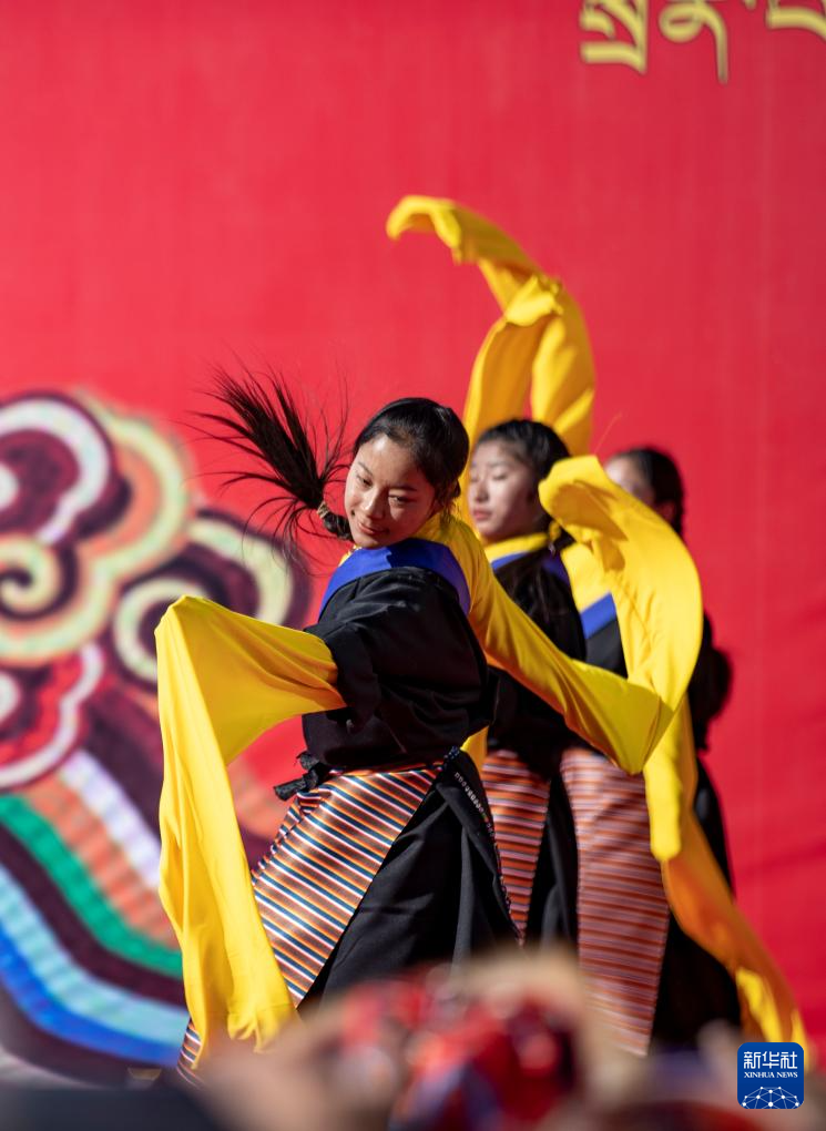 12月10日,當地群眾(zhong) 在展銷會(hui) 開幕式上表演歌舞。新華社記者 薑帆 攝