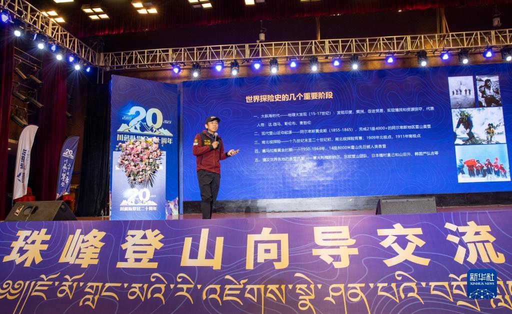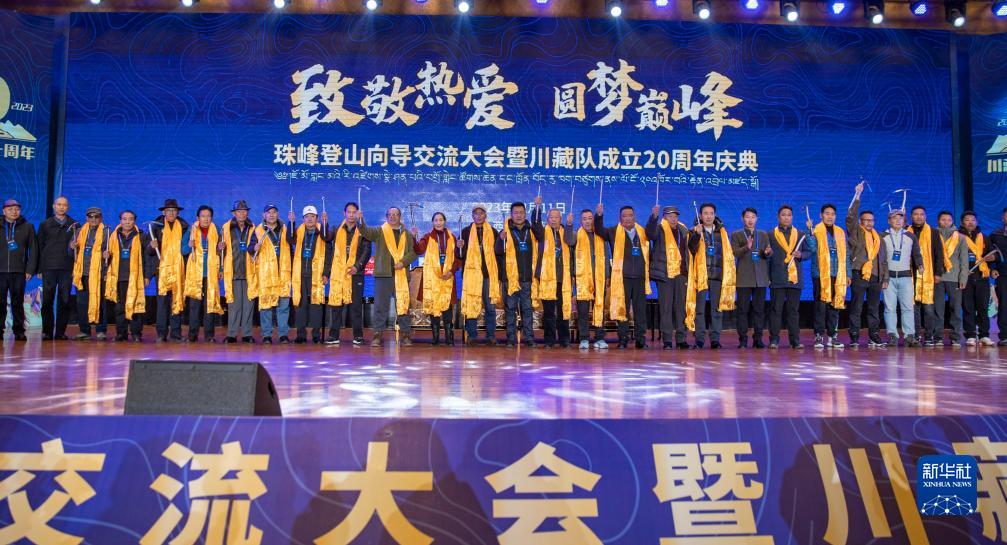 當日,以“致敬熱愛 圓夢巔峰”為(wei) 主題的珠峰登山向導交流大會(hui) 暨川藏高山向導協作隊成立20周年慶典在拉薩舉(ju) 行。