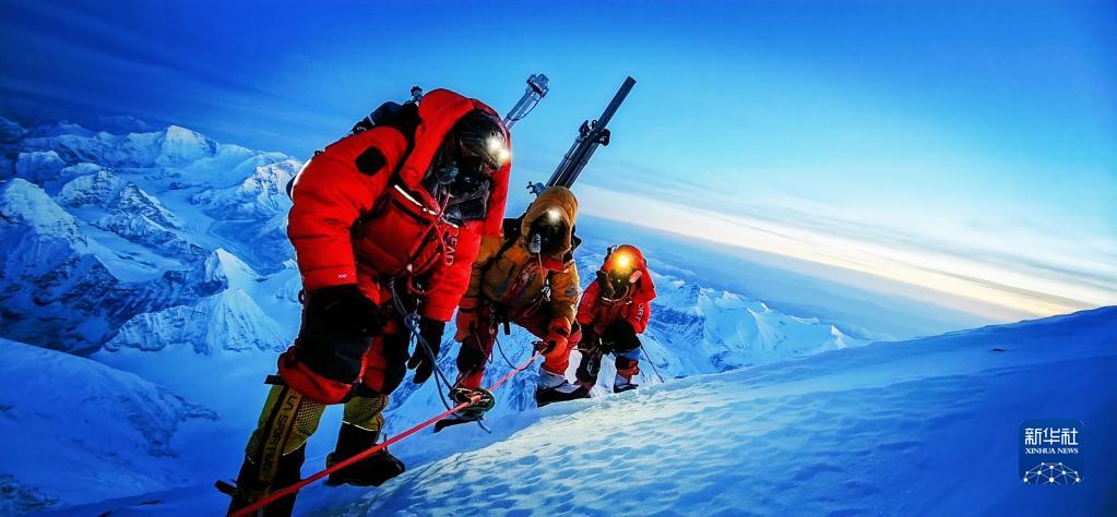 中國登山者在攀登珠峰(2020年5月19日攝)。新華社發(川藏高山向導協作隊供圖)