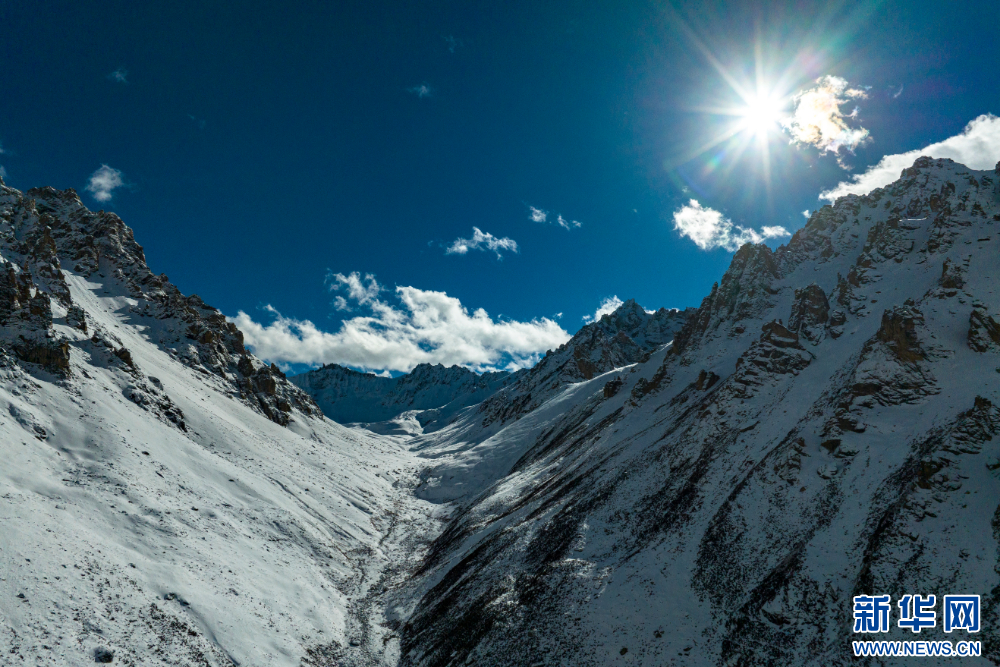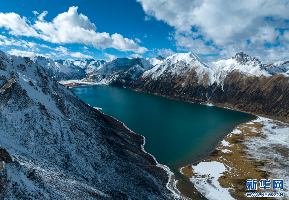 12月10日,從(cong) 嘉乃玉錯湖邊拍攝的雪山(無人機照片)。新華網 旦增努布 攝
