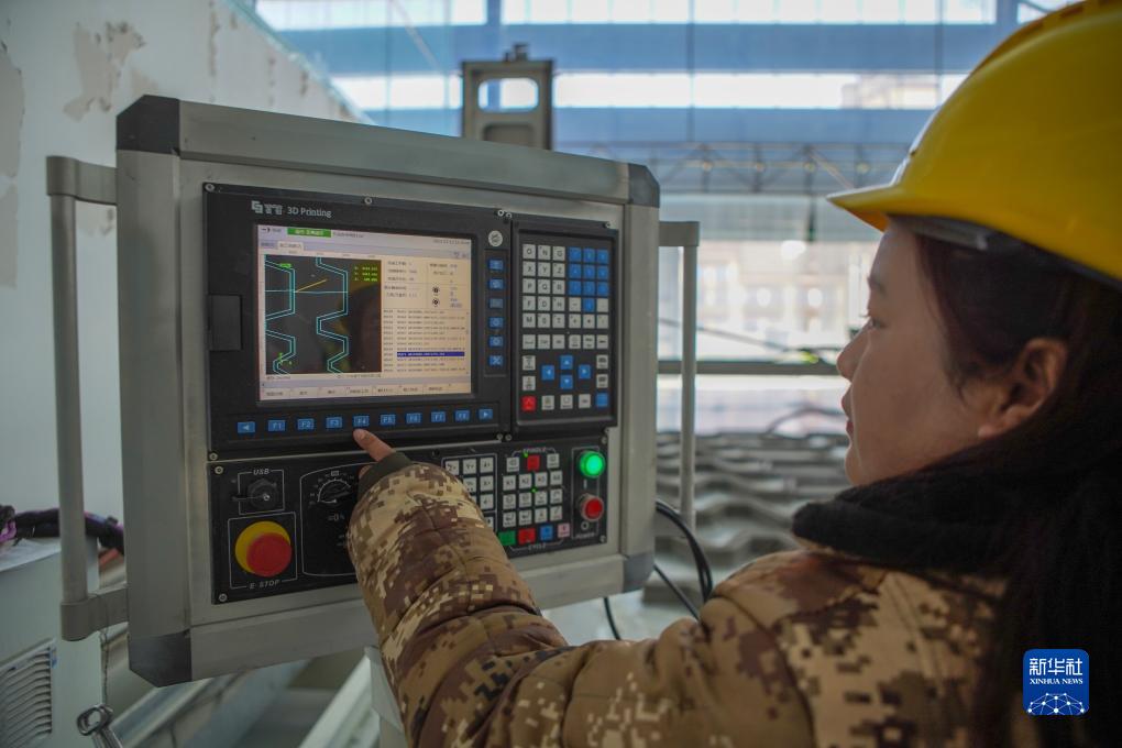 工人在3D打印建築機器的操控台上操作(12月12日攝)。新華社記者 邵澤東(dong) 攝