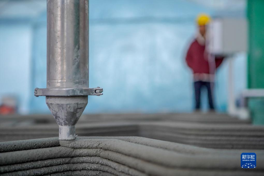 3D打印建築機器在打印產(chan) 品(12月12日攝)。新華社記者 邵澤東(dong) 攝