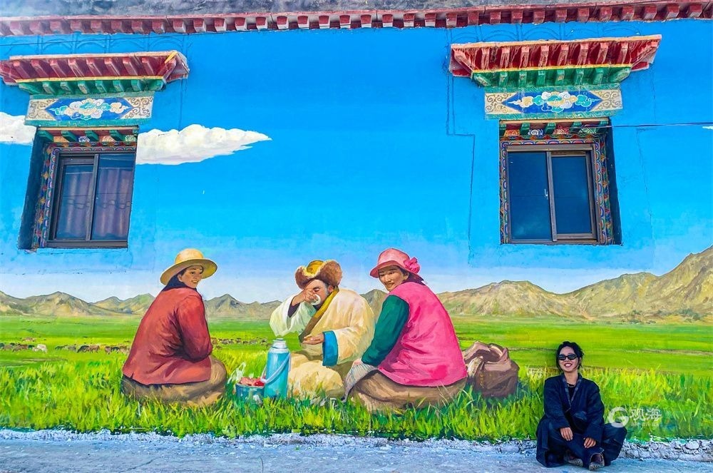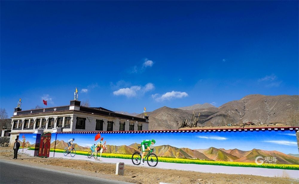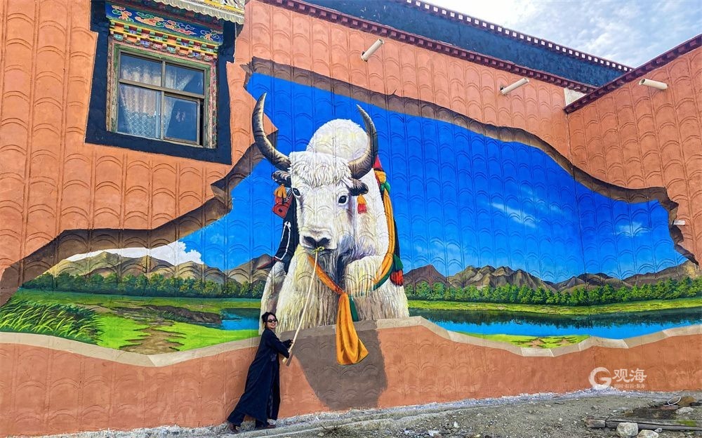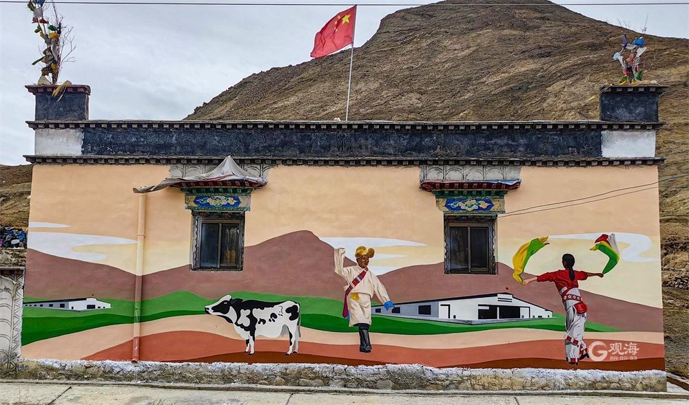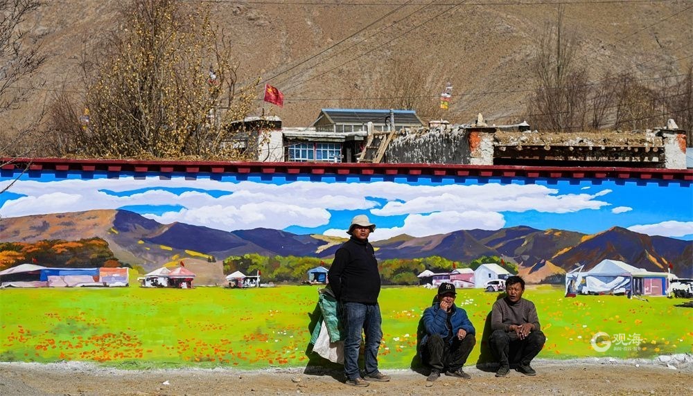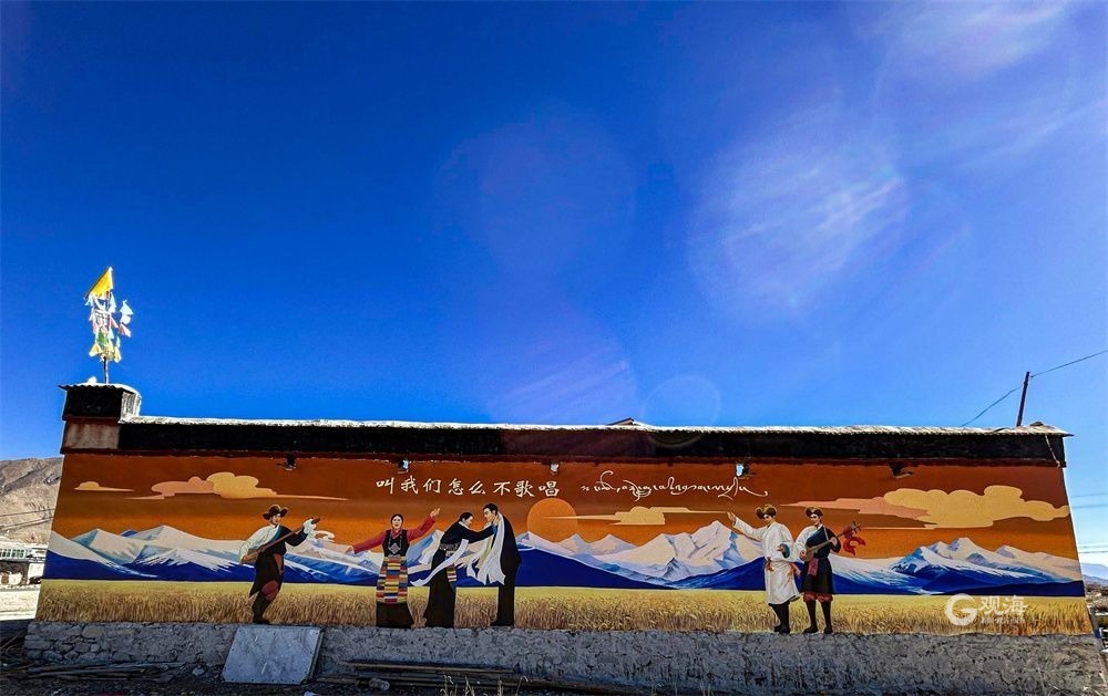 廣袤的高原上,在連綿起伏的山巒之下,是藏族農(nong) 家趕著傳(chuan) 統的“二牛抬杠”耕耘的場景,旁邊的“阿佳”則撒下希望的青稞種子……這樣的場景當然不會(hui) 出現在現在這個(ge) 滴水成冰的季節,而是躍然於(yu) 藏家傳(chuan) 統村居的院牆之上。“我家這麵牆原來就是貼滿了牛糞,現在畫上了我們(men) 平時勞動的景象,感覺比之前更好看了。”桑珠孜區東(dong) 嘎鄉(xiang) 色定村的村民旦瓊說,此前的一年又一年,他都是把牛糞貼在牆上,固然有傳(chuan) 統的高原美感,但是與(yu) 現在院牆上畫的鄉(xiang) 村振興(xing) 的場景相比,還是現在的感覺更不錯。