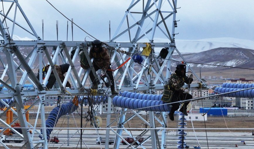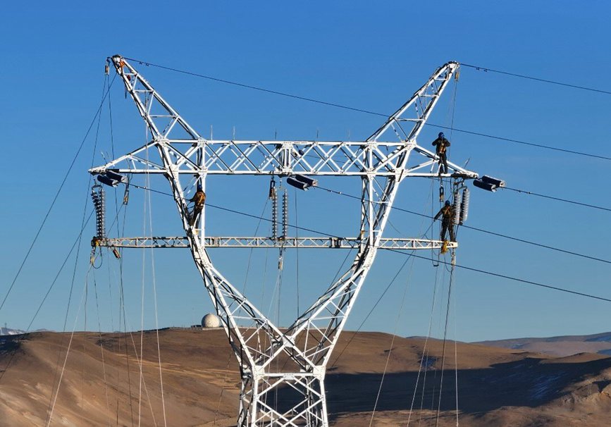 “還有10米,5米,導線到位!”12月12日,18時,隨著對講機傳(chuan) 出的N5號塔位導線到位,標誌著海拔4600米的西藏自治區那曲市色尼區國能100兆瓦風電110千伏送出工程全部貫通。