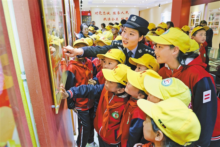 圖為(wei) 亞(ya) 東(dong) 出入境邊防檢查站民警組織駐地小學生開展愛國主義(yi) 教育。記者 張雪芳 攝