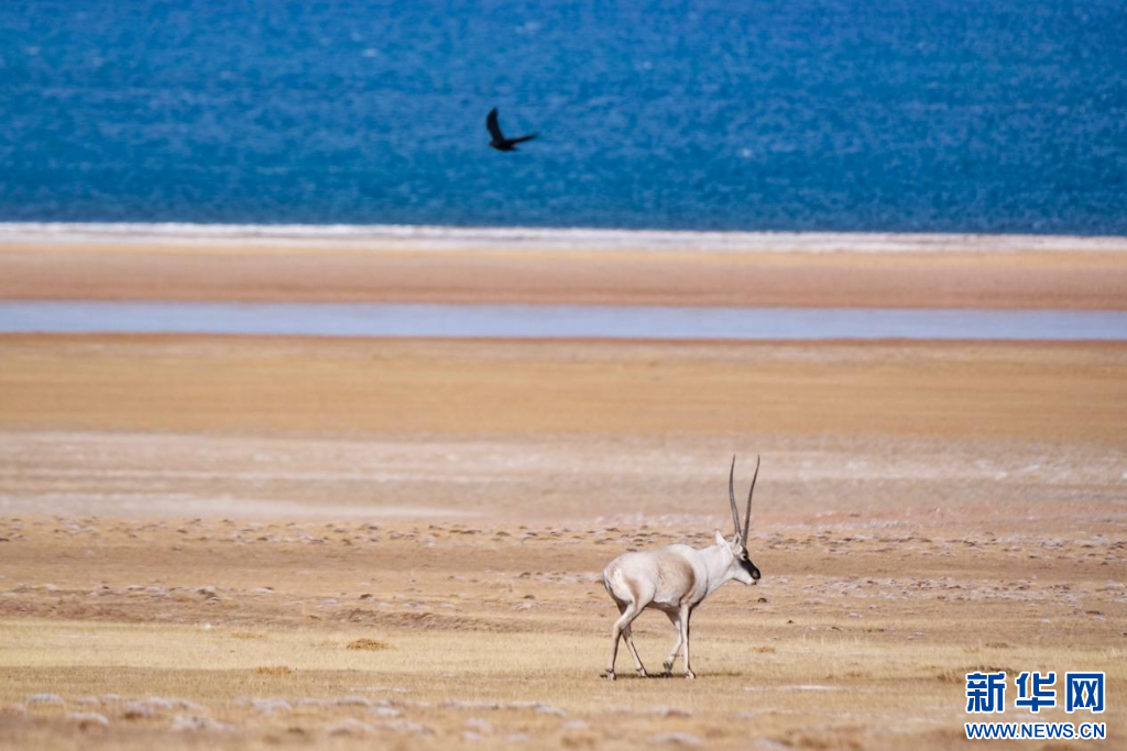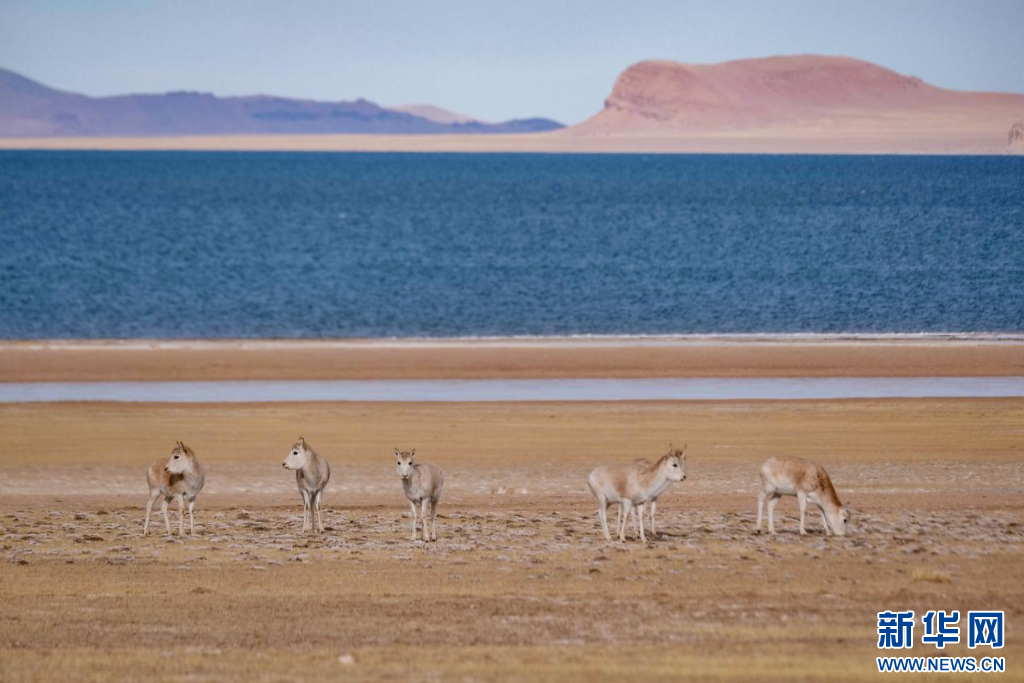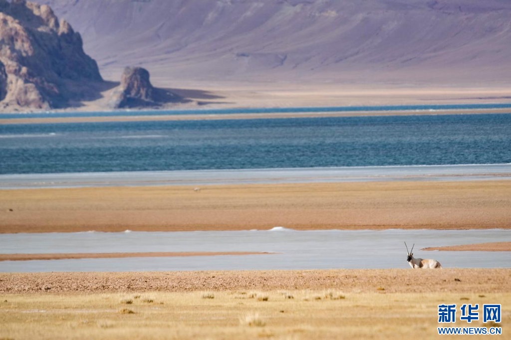 冬日的色林錯,景色怡人,藏羚羊在色林錯畔覓食,形成一幅生動美麗(li) 的高原生態畫卷。