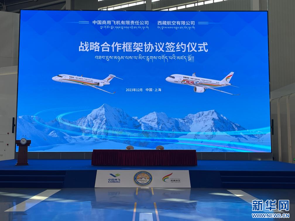 西藏航空與(yu) 中國商飛簽署戰略合作框架協議現場。(西藏航空供圖)