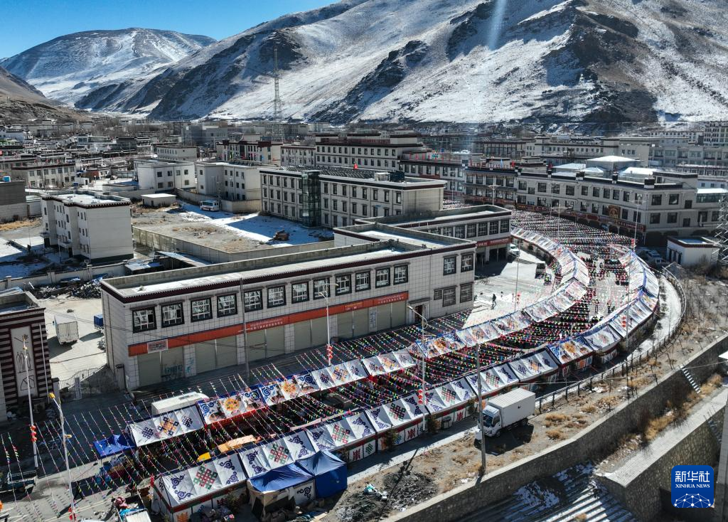 12月14日,西藏日喀則市康馬縣冬季物資文化交流會(hui) 現場航拍(無人機照片)。新華社記者晉美多吉 攝