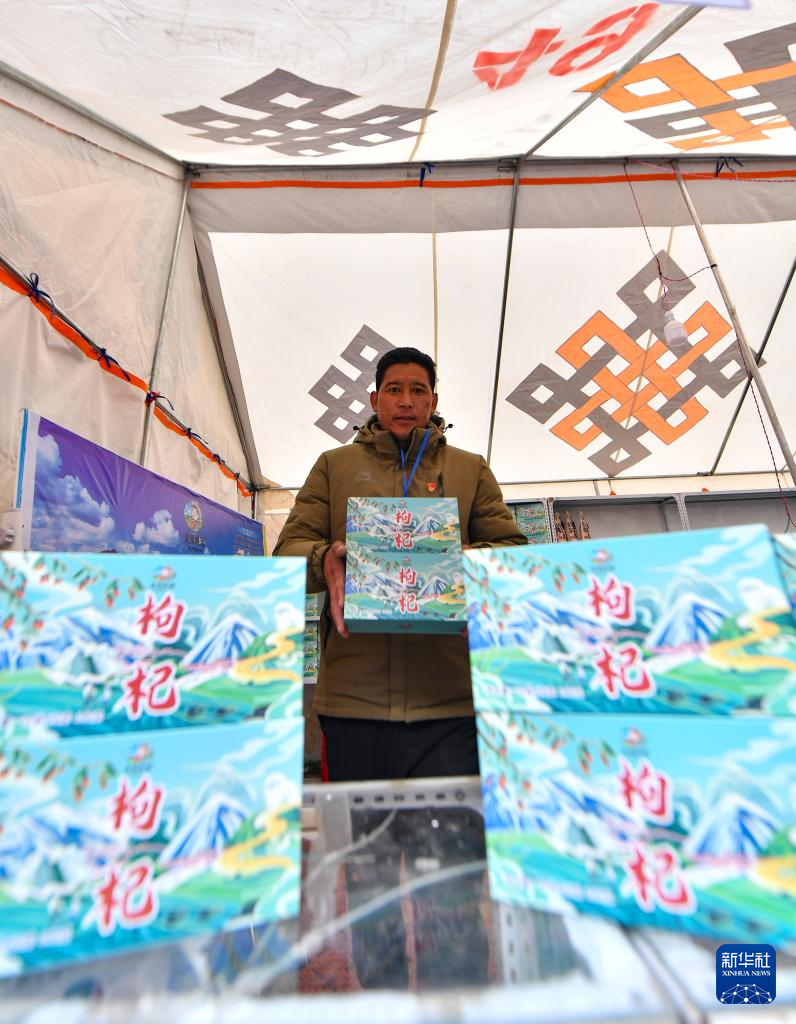 12月13日,在西藏日喀則市康馬縣冬季物資文化交流會(hui) 上,涅如麥鄉(xiang) 群眾(zhong) 展示自產(chan) 的枸杞。新華社記者晉美多吉 攝