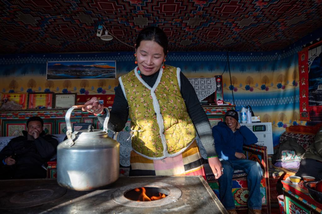 12月18日,嘎宗正在家中的牛糞爐上燒水。新華社記者薑帆 攝