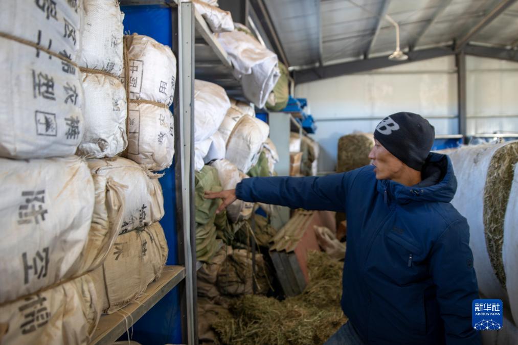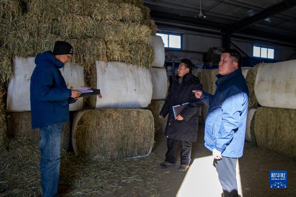 當地幹部在俄久鄉(xiang) 農(nong) 牧業(ye) 防抗災物資儲(chu) 備庫裏盤點物資庫存。這裏草料、爐子、棉服、煤炭、除雪工具等一應俱全(12月18日攝)。新華社記者 薑帆 攝