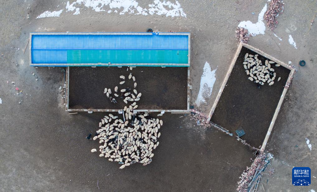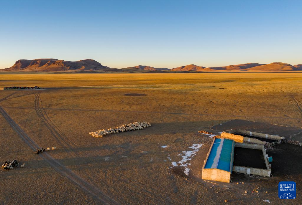 太陽落山,丹增家的羊回到棚圈。其中左側(ce) 藍頂的是去年新蓋的封閉式棚圈,右側(ce) 是傳(chuan) 統的敞開式羊圈(無人機照片,12月18日攝)。新華社記者 薑帆 攝
