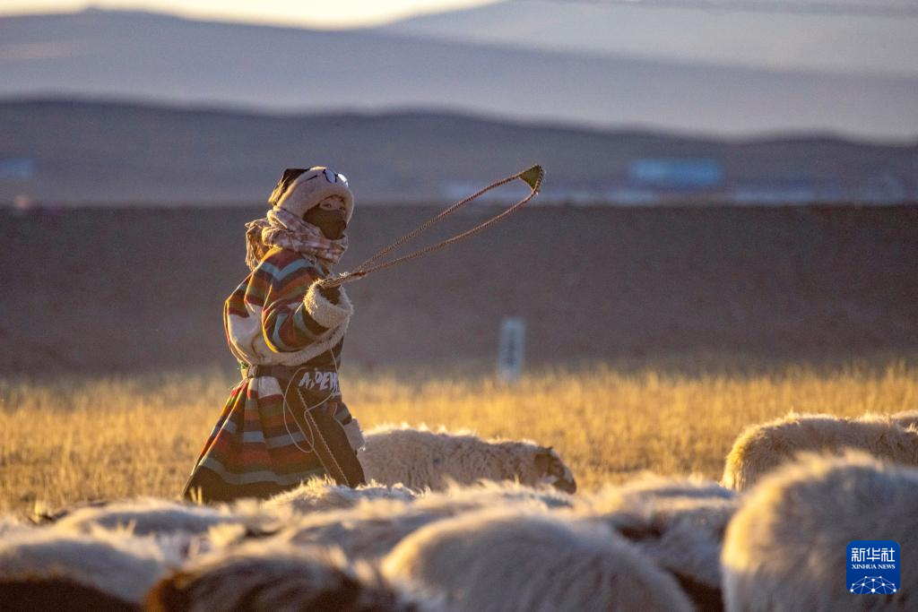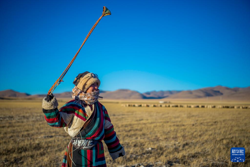 丹增在牧場上放羊(12月18日攝)。新華社發(旦增努布攝)