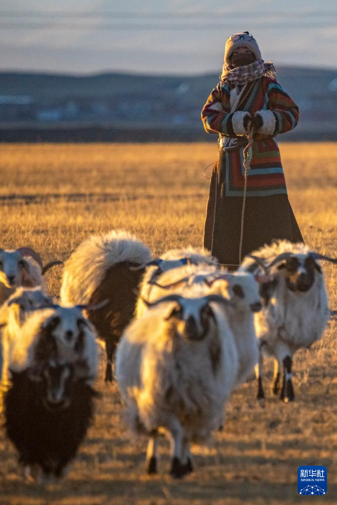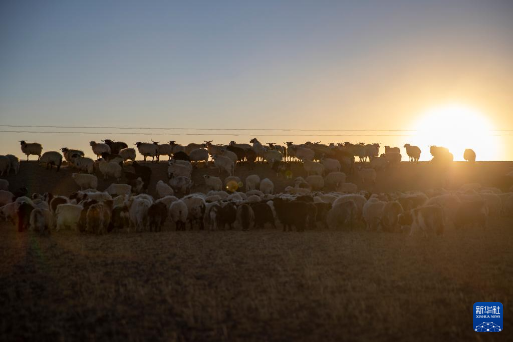 太陽落山,丹增家的羊從(cong) 草場趕回棚圈(12月18日攝)。新華社記者 薑帆 攝