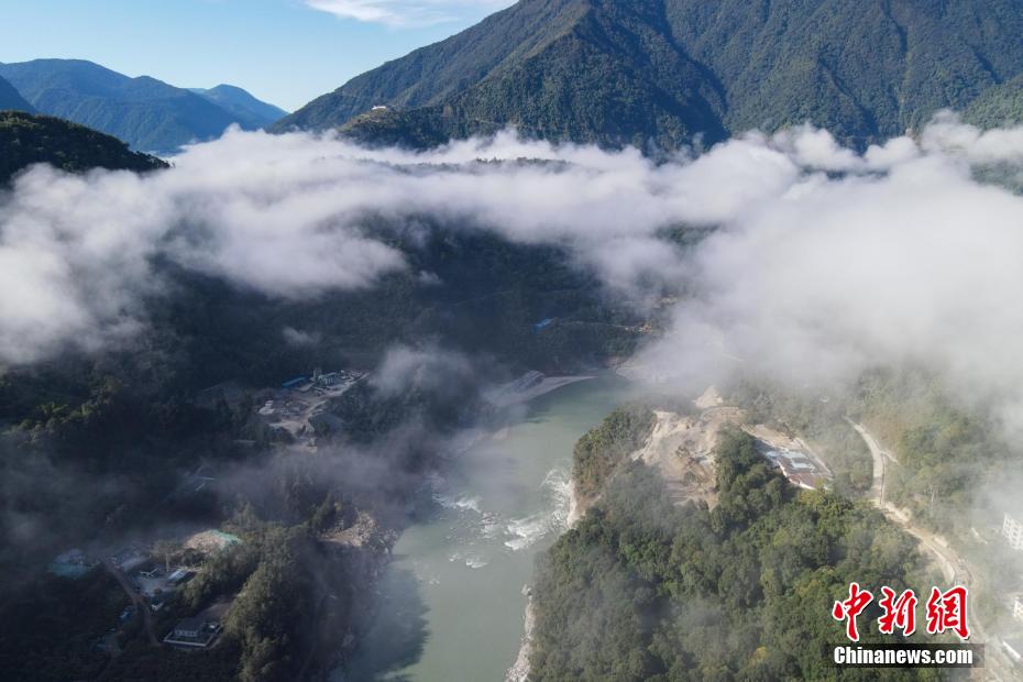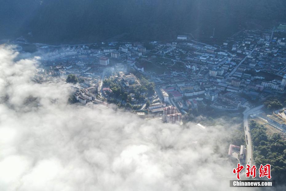 12月22日,雅魯藏布江雲(yun) 海與(yu) 墨脫縣城。(無人機畫麵)