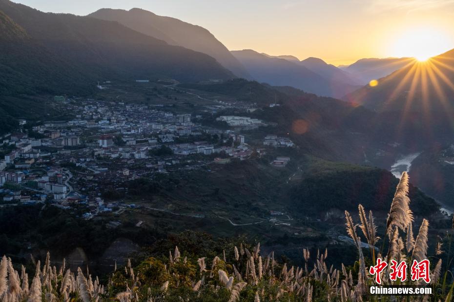12月21日,墨脫縣城日落風光。