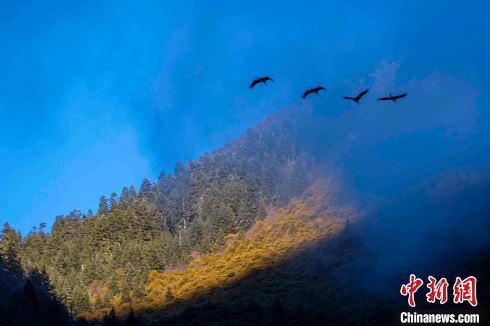 圖為(wei) 西藏林芝市工布江達縣的黑頸鶴。益西旦增 攝