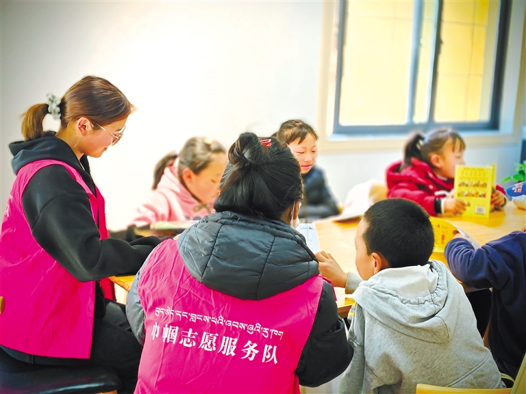 冬日的暖陽照在察隅縣竹瓦根鎮紮拉村農(nong) 家書(shu) 屋的房頂,暖意融融。在幾名新時代文明實踐誌願服務隊成員的輔導下,孩子們(men) 有的玩遊戲、有的做手工、有的寫(xie) 作業(ye) 、有的閱讀書(shu) 籍。