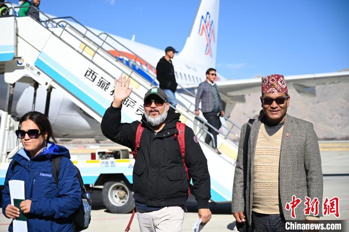 12月28日,從(cong) 尼泊爾加德滿都抵達拉薩貢嘎國際機場的旅客。中新社記者 趙朗 攝