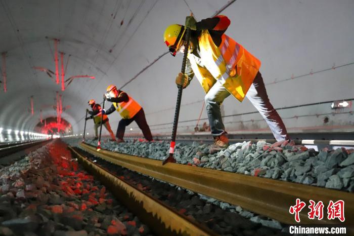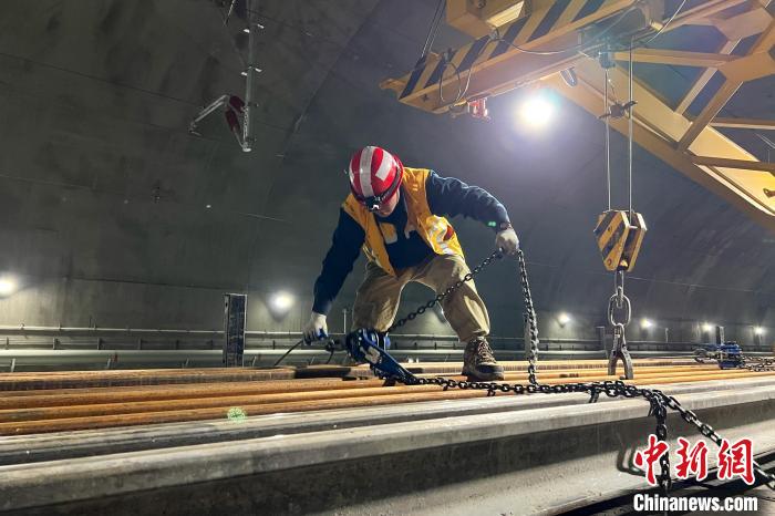 圖為(wei) 1月1日,西藏拉林鐵路接收新軌作業(ye) 現場。拉巴次仁 攝