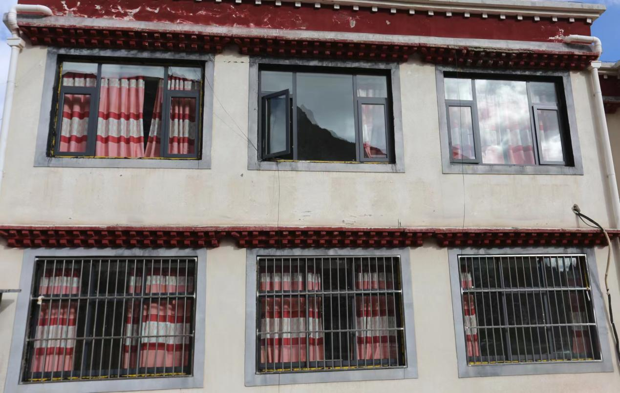 “門巴鄉(xiang) 貼朗村海拔4600多米左右,冬季氣候寒冷,村兩(liang) 委辦公室建於(yu) 2016年,門窗老化嚴(yan) 重四處漏風,現在的辦公室和住宿樓都換成了雙層玻璃,很暖和。”門巴鄉(xiang) 貼朗村黨(dang) 委書(shu) 記嘎布說。