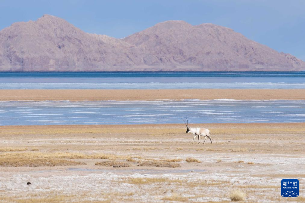 這是在色林錯湖畔拍攝到的藏羚羊(1月5日攝)。新華社記者 旦增尼瑪曲珠 攝