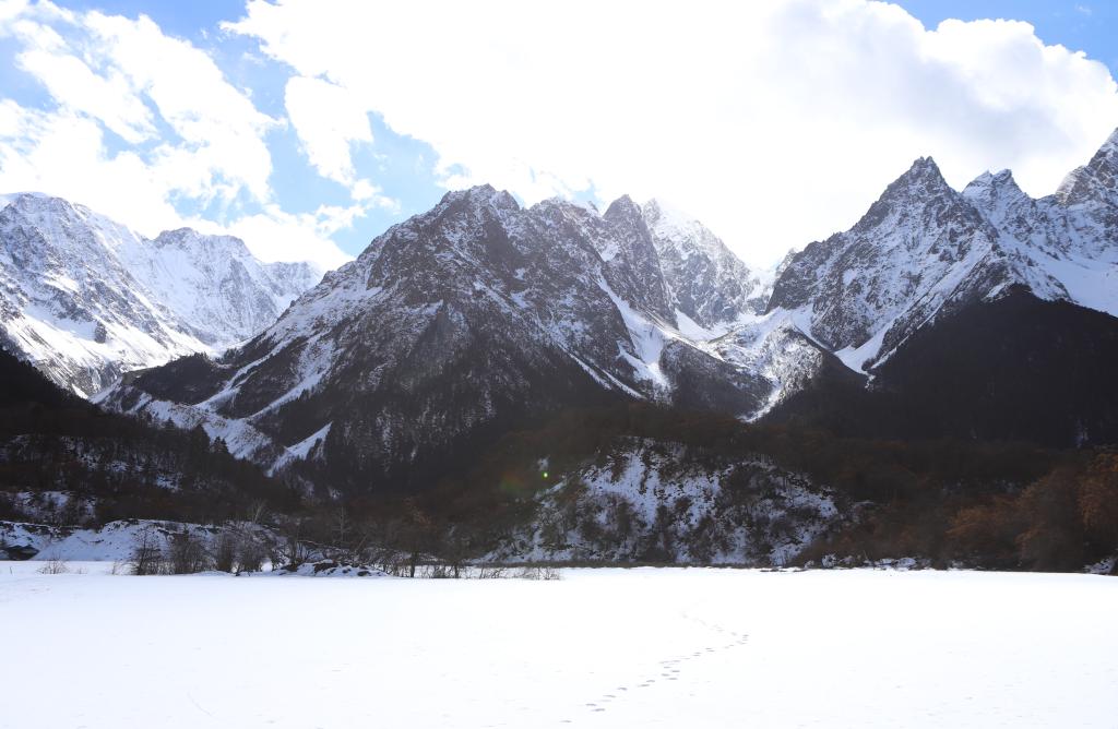 梅裏雪山群峰和覆蓋白雪的冰湖(1月5日攝)。新華社記者關(guan) 明輝 攝