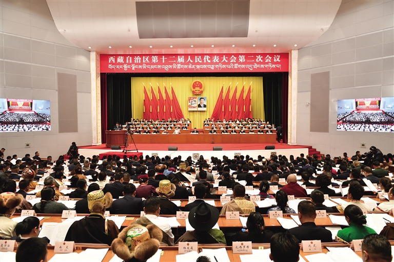 西藏自治區十二屆人大二次會(hui) 議開幕現場。 記者 次仁平措 攝