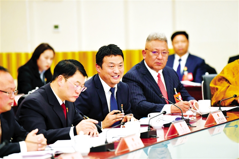 圖為(wei) 出席西藏自治區十二屆人大二次會(hui) 議的那曲代表團分組審議現場。記者 旦增西旦 攝