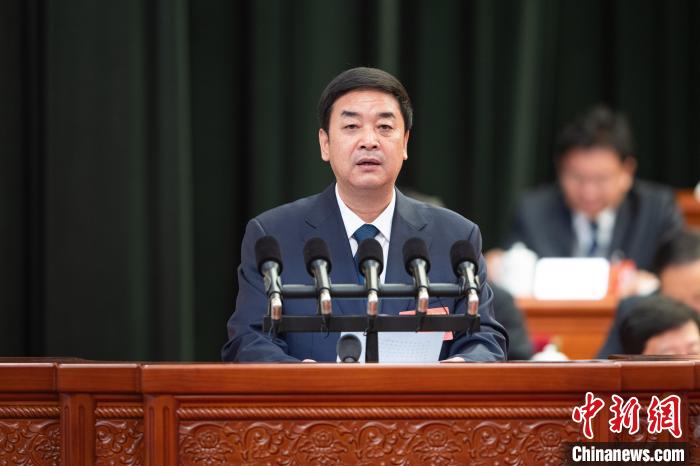 圖為(wei) 西藏自治區主席嚴(yan) 金海作政府工作報告。貢嘎來鬆 攝