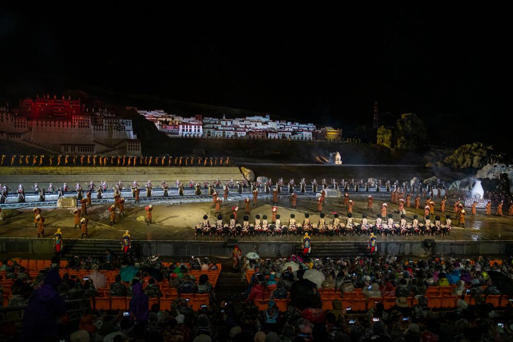 2023年6月15日拍攝的大型實景劇《文成公主》的表演現場。新華社記者孫非攝