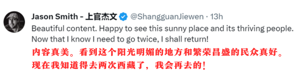 看到“人這一輩子要去兩(liang) 次西藏,一次是把心留在那裏,一次是把留在那裏的心找回來”的網絡熱語,美國媒體(ti) 人上官傑文說: