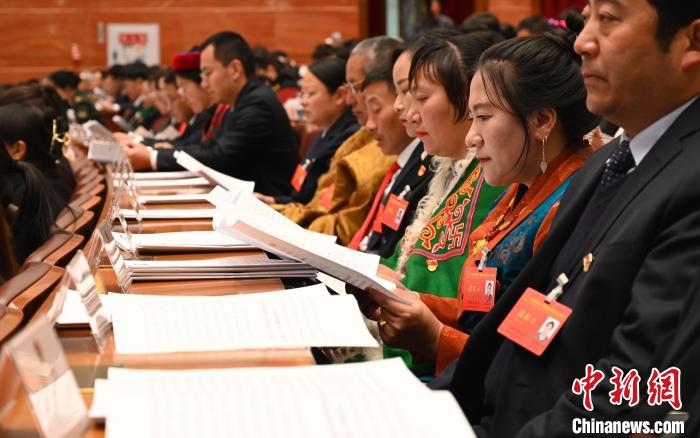當日,西藏自治區人大常委會(hui) 主任洛桑江村作西藏自治區人民代表大會(hui) 常務委員會(hui) 工作報告。