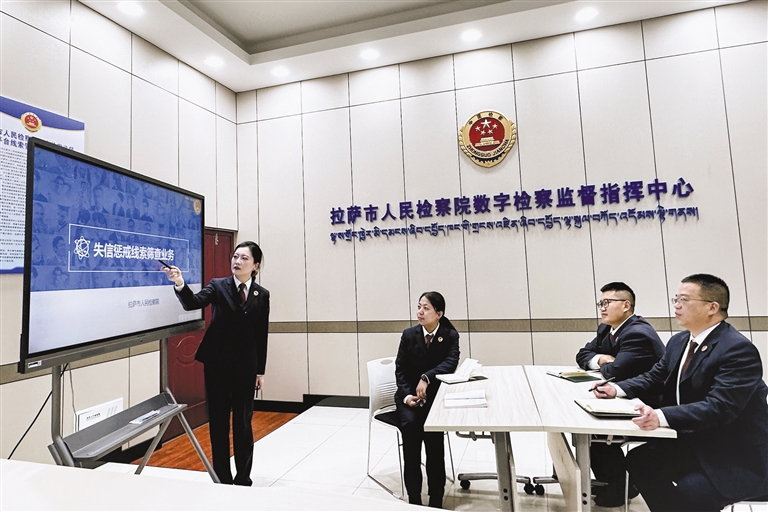 拉薩市人民檢察院檢察官通過數字檢察監督平台對失信懲戒不當線索進行人工研判。