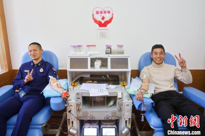 圖為(wei) 西藏林芝森林消防進行獻血。王澤棟 攝