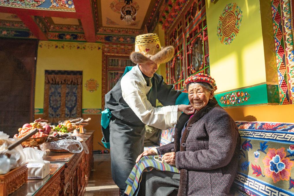 “家裏老人安享晚年,年輕人成家立業(ye) ,孩子們(men) 上學讀書(shu) ,這就是我們(men) 最大的‘年味兒(er) ’。”巴桑普尺的女兒(er) 尼瑪潘多說。