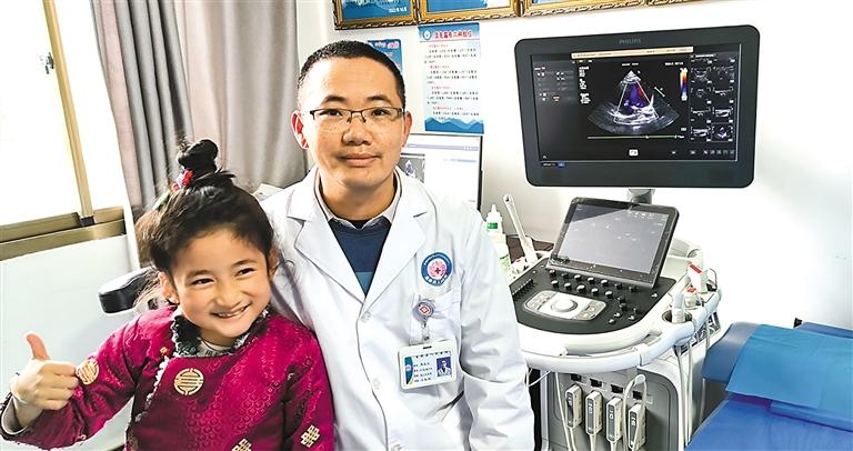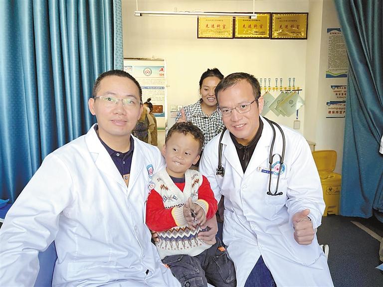 援藏醫療隊廖森成醫生與(yu) 前來篩查的兒(er) 童合影。