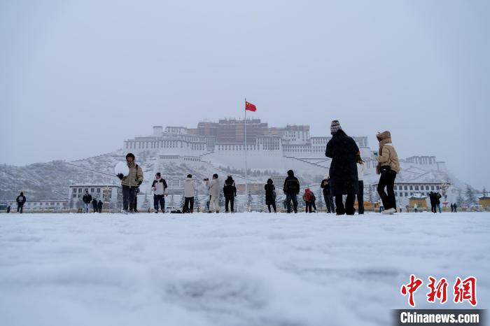 圖為(wei) 1月18日上午,民眾(zhong) 在拉薩布達拉宮廣場賞雪。江飛波 攝