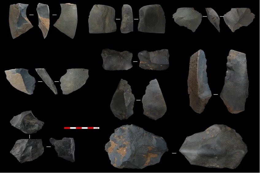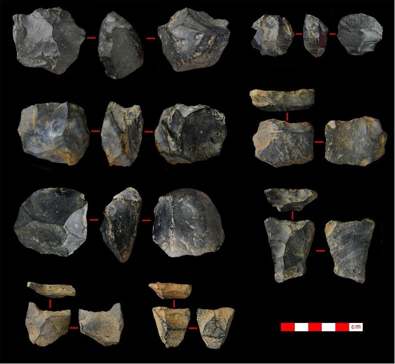 截至2023年田野工作結束,梅龍達普遺址共發掘10個(ge) 探方,在一號洞和二號洞不同部位揭露出三套文化遺存(三號洞尚未進行考古發掘)。根據地層堆積、初步的碳十四和光釋光測年結果、石製品技術特點等因素綜合判斷,1號洞中後部、2號洞和1號洞洞口部位的堆積分別代表由早至晚三期人類占據洞穴的曆史。