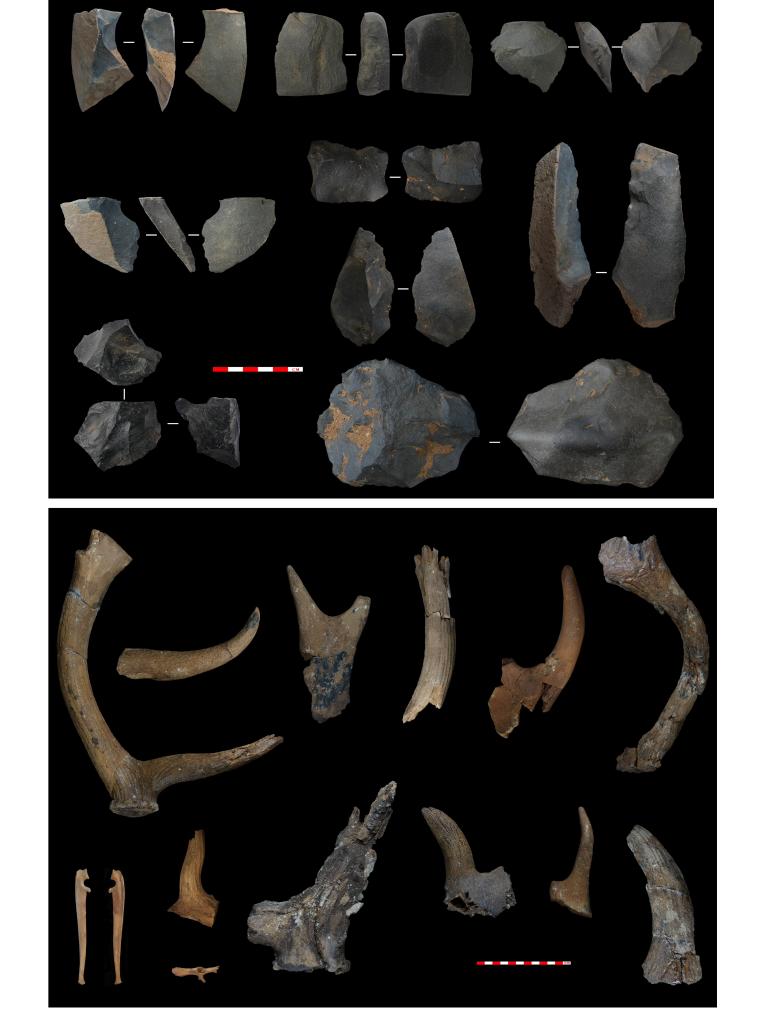 第一期遺存——石製品(上);第一期遺存——動物化石(下)。(資料圖片由中國科學院古脊椎動物與(yu) 古人類研究所提供)