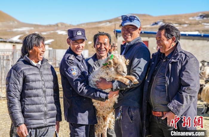 圖為(wei) 崗巴邊境派出所若木新村警務室民警巴桑次仁在合作社見證分羊。葉軼 攝
