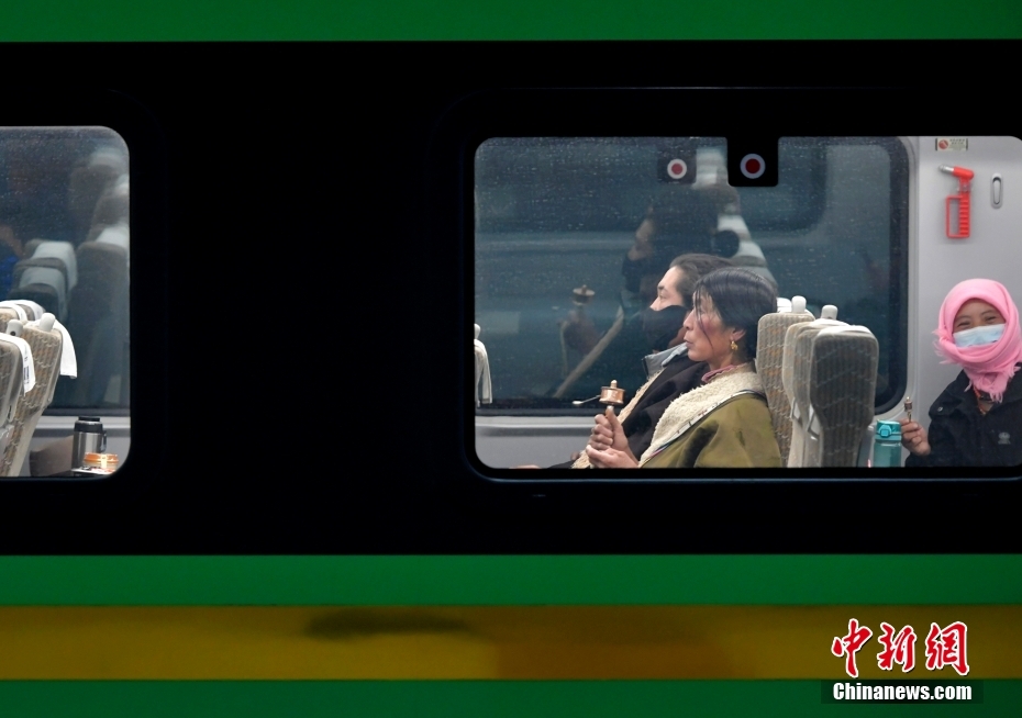 1月26日,西藏2024年春運首日首趟列車C885次(拉薩—日喀則)即將從(cong) 拉薩火車站駛出。當日,2024年春運大幕開啟。圖為(wei) 旅客在C885次列車上等待發車。