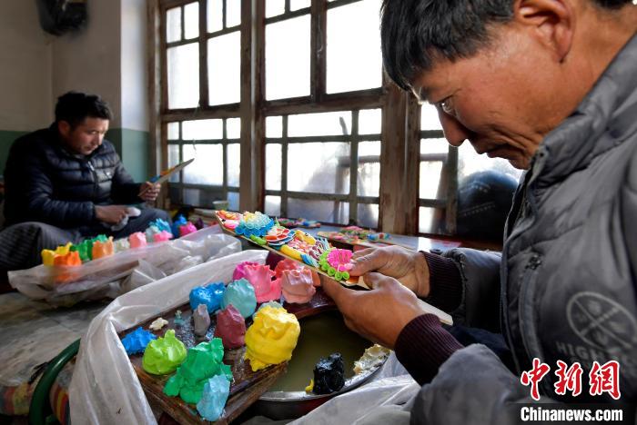圖為(wei) 手工藝人製作酥油花。李林 攝