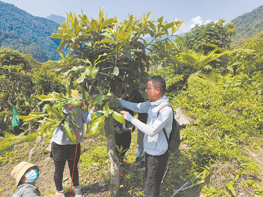 在西藏林芝市墨脫縣背崩鄉(xiang) 西讓村,福建省農(nong) 科院果樹研究所副研究員薑帆(右一)在傳(chuan) 授白肉枇杷種植技術。(資料照片,受訪者供圖)