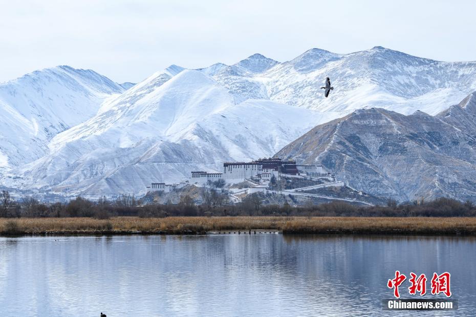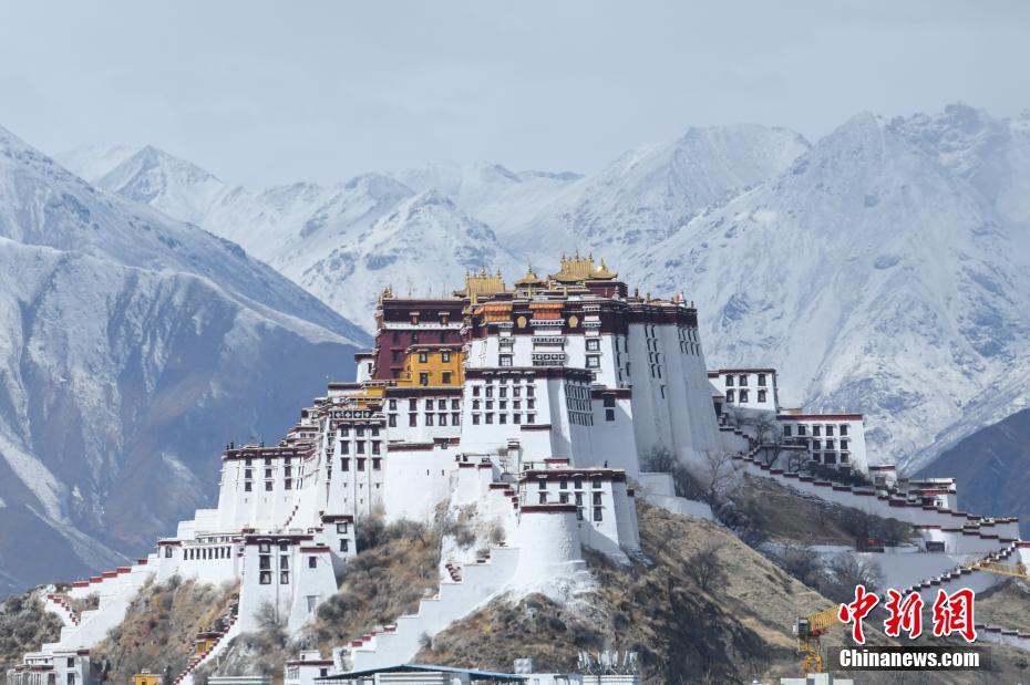 2月15日,西藏拉薩,雪後的拉薩周圍群山白雪皚皚,布達拉宮風景如畫。中新社記者 貢嘎來鬆 攝