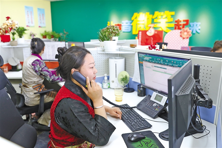 國網西藏電力有限公司營銷服務中心客服人員在接聽用戶電話。通訊員 旦增央卓 攝