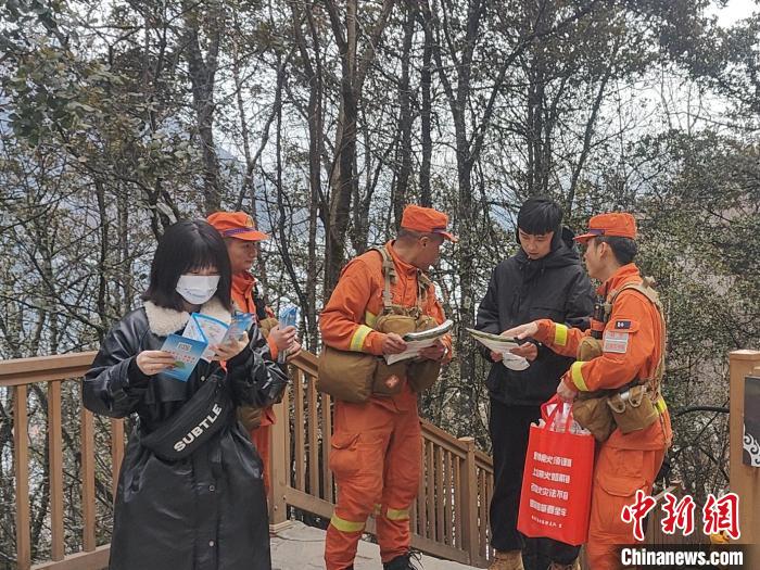 “叔叔您好,您在遊玩過程中一定要注意安全用火,如發現火情,請在確保自身安全的前提下撥打12119報警電話……”森林消防指戰員在人流密集的景區設立執勤點,向來往遊客發放防火常識宣傳(chuan) 手冊(ce) ,麵對麵地科普森林防火常識,嚴(yan) 格管控野外火源、及時排除火險隱患。
