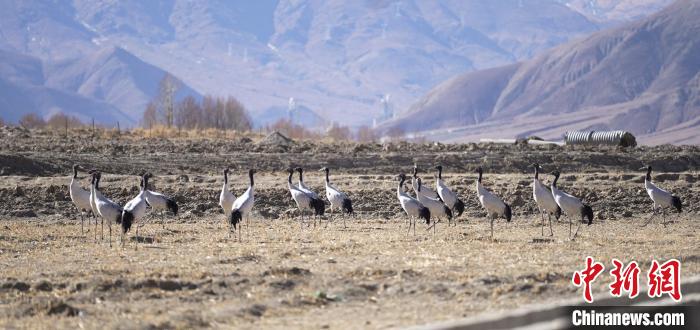 據2022年冬季越冬黑頸鶴種群數量調查顯示,在西藏越冬的黑頸鶴種群數量達11000餘(yu) 隻,占中國黑頸鶴總數約三分之二,目前種群數量持續增長,並在西藏全區均有分布。