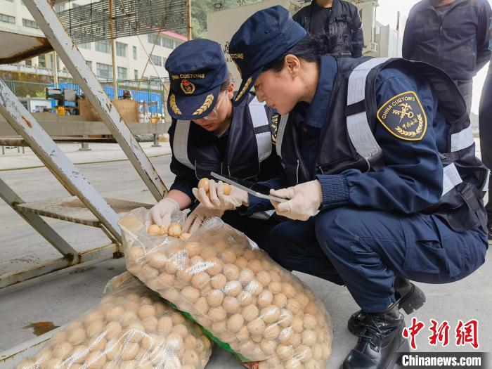 圖為(wei) 2023年,拉薩海關(guan) 所屬聶拉木海關(guan) 關(guan) 員監管驗放出口農(nong) 產(chan) 品。資料圖 拉薩海關(guan) 供圖