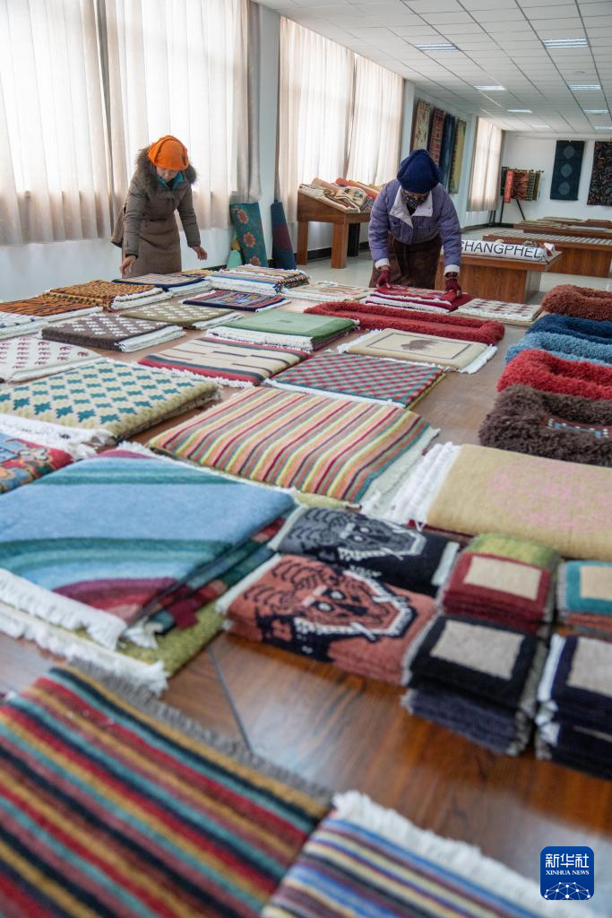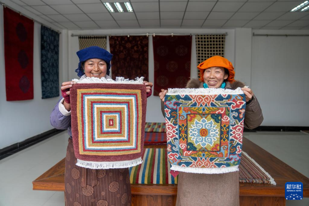 兩(liang) 名婦女在展示自己編織的藏毯(2月22日攝)。新華社記者 旦增尼瑪曲珠 攝